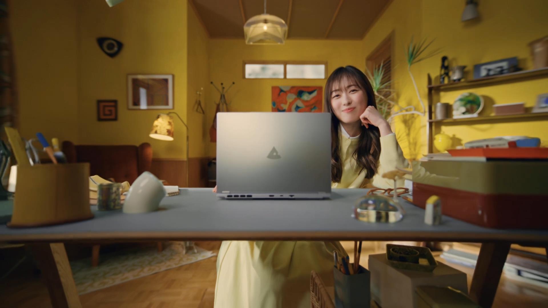 「仕事」篇 「起きて10秒 リモート会議 カメラオフしていただきます」リモート会議中にパンを食べる福原遥さん「あっ!」